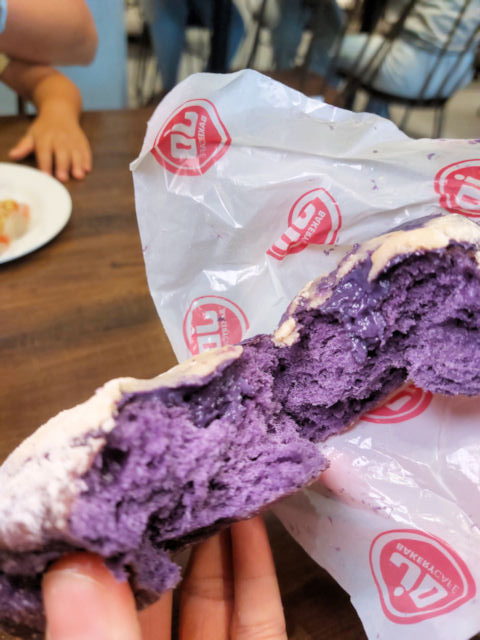 We also got some of JD Bakery Cafe’s breads to take home. We tried the ube donut, which is a donut filled with ube jam. It was very nice and very sticky!