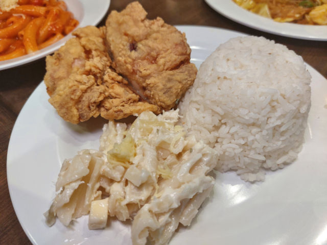 If you want a salad, try the fried chicken and macaroni salad combination. The macaroni salad is a little fruity with pineapple chunks, and it is a nice combination too when paired with the fried chicken.