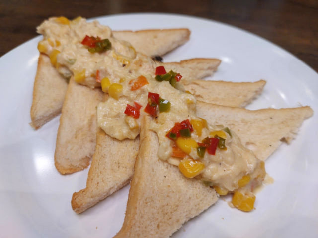 A good deal at 55 pesos is the Chicken Ala King. It is creamed corn and chicken served on toast. It’s a nice quick snack and appetizer.