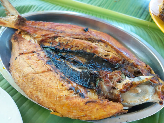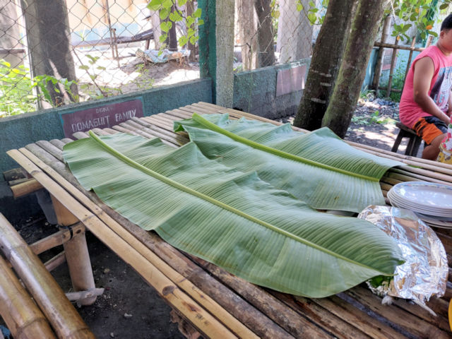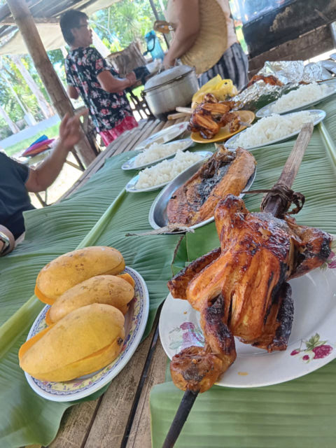 We were served on banana leaves on a rough bamboo table and bench, but it was a feast fit for kings. We were serenaded by the hum of pupils learning inside their classrooms and by the Choret buses making their way down the South Negros road—fine music no king has ever heard.
