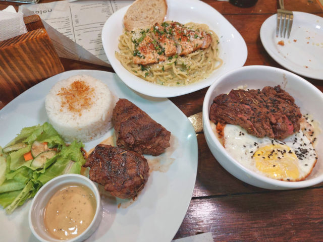 We ordered Nolew’s Kimchi Fried Rice with steak. It was really good! The dish consisted of kimchi fried rice topped with a sunny side up egg and a steak cooked to our liking – we chose medium rare – and then topped with black sesame seeds. It was a tasty, filling, and elegant dish that steak lovers will surely enjoy at Nolew Bacolod.
