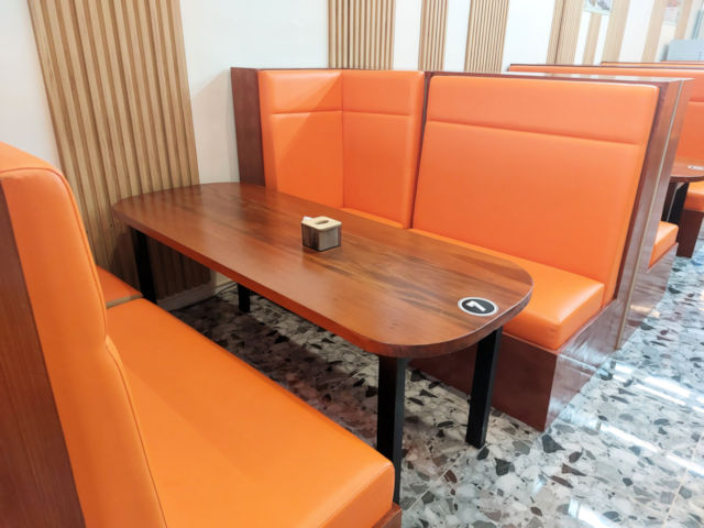 There are several diner style seats in Aghaz Biryani and BBQ. These are super soft and cozy!