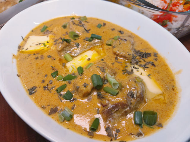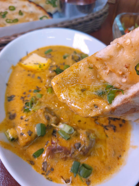 There’s a LOT of curry dishes on the menu. Chicken, mutton and beef! We chose the Beef butter curry and boy – this was SO GOOD. We paired it with Green chili naan!