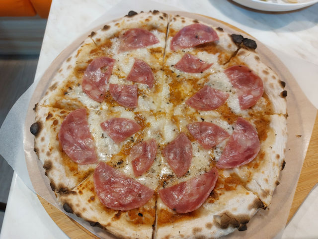 Salami Napoli Pizza – this had tomato sauce, mozzarella, Italian blue gorgonzola cheese and the