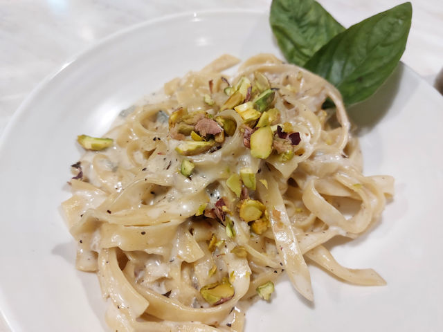 pistachio cream pasta. This was quite enjoyable! The pasta is really made using a pasta machine and it has a nice, fresh taste with a springy texture. Plus, it was our first time to try the pistachio, blue cheese combination. Very Tasty!