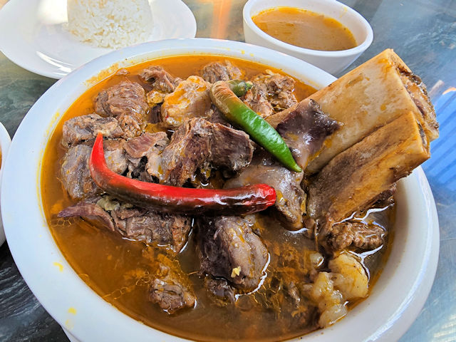 To make authentic Bacolod Beef Cansi, You will need salt and pepper, beef, peppers, beef bones, beef, margarine, batuan and that’s it! Just boil them all together. Each bowl of Cansi at Eron’s Cansi house costs around 470 for the big bowl (good for 2-3 people)