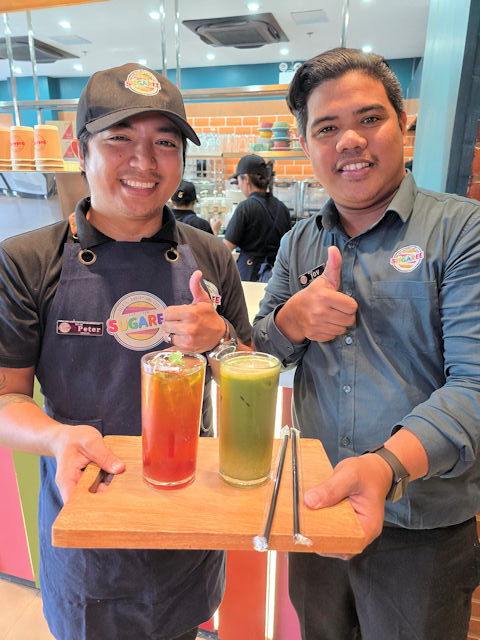 On the left, we have Peter with the Iced Berry Hibiscus Tea ๐๐บ, while Giovanni holds up the Green Tea Lemon Fizz ๐๐ตโan excellent combination of Matcha and Lemon! Super refreshing! ๐ฟ๐ง