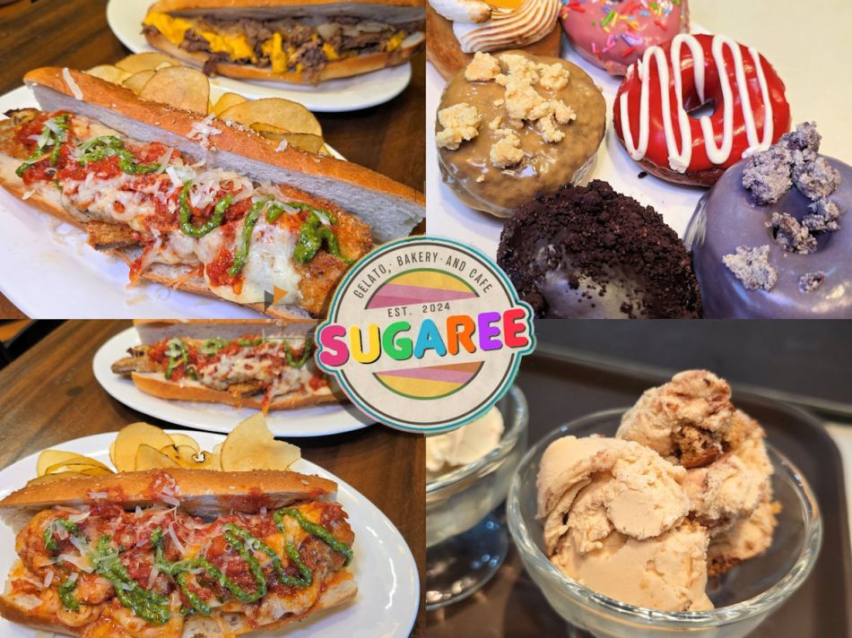 Their eggplant parmigiana sandwich offers a vegetarian twist. It consists of breaded and fried slices of eggplant layered with marinara sauce and melted mozzarella, placed inside Sugaree’s signature toasted roll.