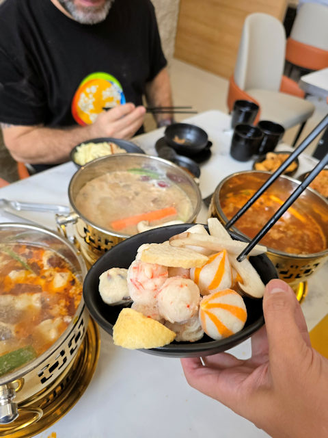 Hotpot involves dipping the cooked balls and meats in a sauce! You can make your own or pick the house blend one. We love the house blend but our favorite has got to be our own special sauce.