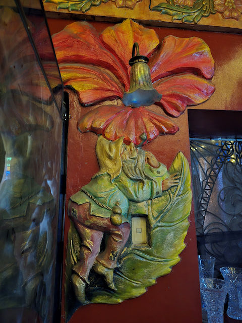 The main entrance is dominated by a light fixture with grapes and vines twining around the ceiling! I like to call this the “fairy room” because of the beautiful duende and fairy sculptures around the light switches! 🧚♂️✨