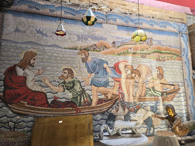 In one corner is a massive mural following that of Leonardo da Vinci, while another nook imitates an Italian rustic bathhouse complete with relief sculptures! 🇮🇹🖼️
